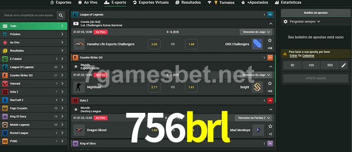 O 756brl oferece uma grande seleção de opções de apostas em e-sports com probabilidades competitivas